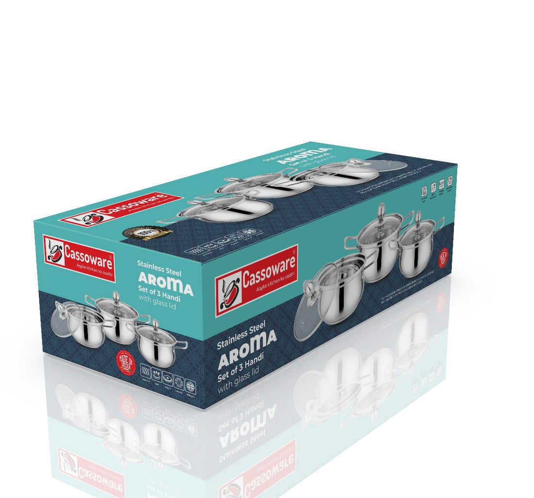 Hammered Handi 3pc with Glass Lid - Encapsulated Bottom Stainless steel Cookware set