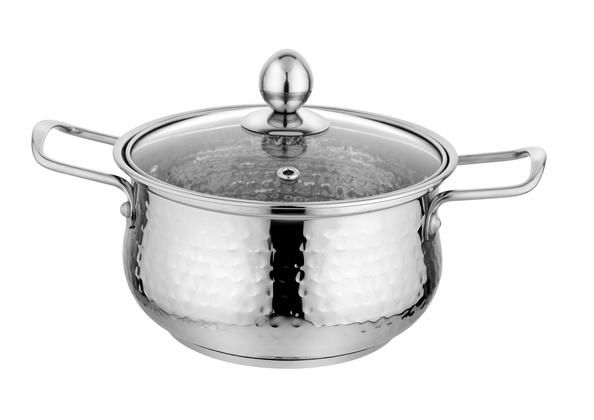 Hammered Handi 3pc with Glass Lid - Encapsulated Bottom Stainless steel Cookware set