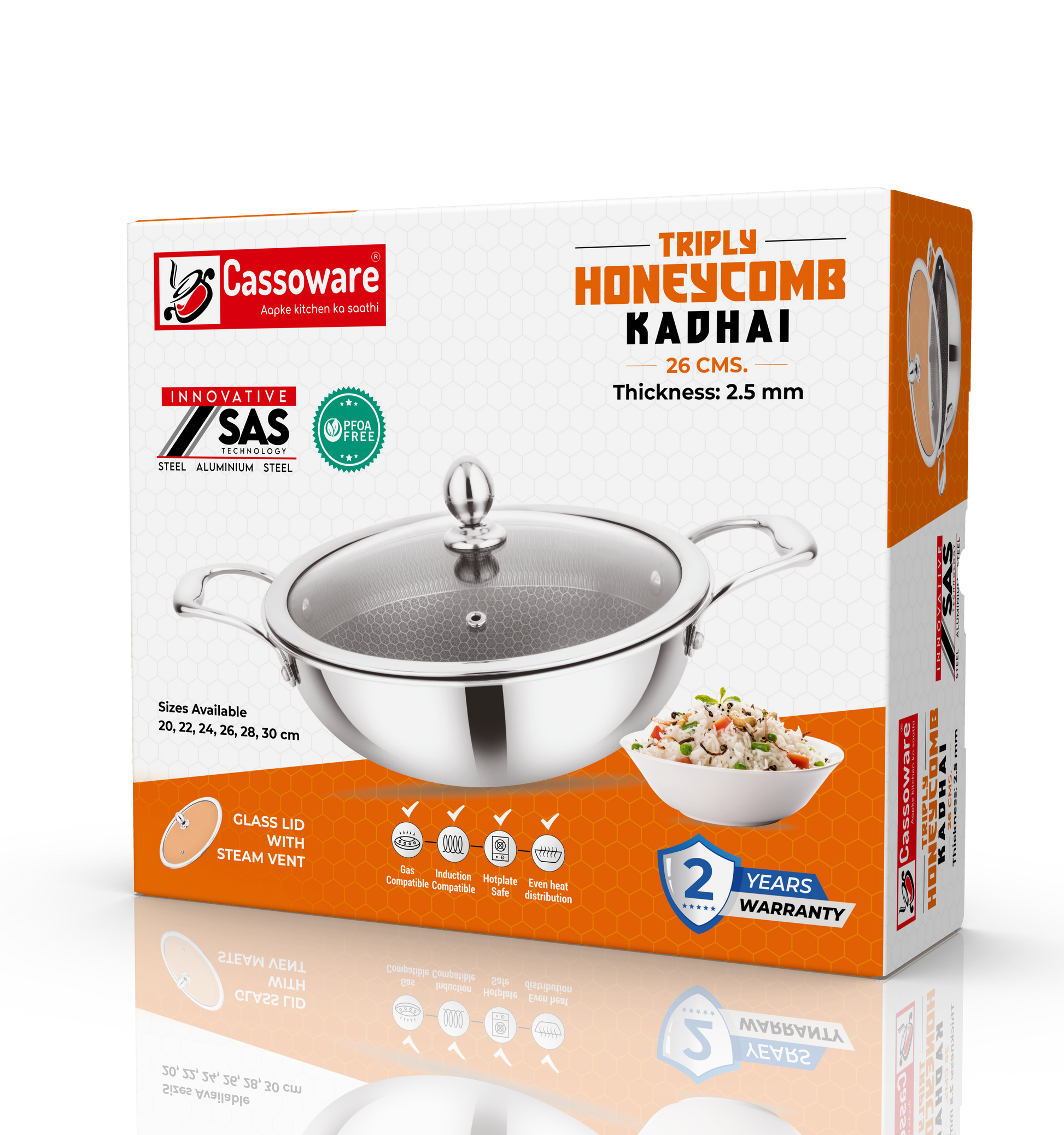 Cook smarter, not harder. The Cassoware Honeycomb Triply Kadhai combines cutting-edge design with professional-grade performance to bring you the perfect balance of style, durability, and health.